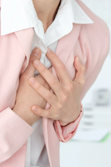 Приступы сопровождаются ощущением сдавленности, тяжести или жжения в груди. Эпизоды могут быть продолжительными и не всегда облегчаются приемом нитроглицерина. Пациенты отмечают утомляемость, одышку, сердцебиение и повышенное потоотделение во время приступов.
